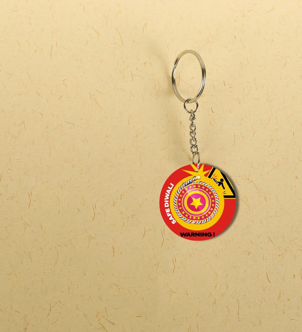 "Diwali Delight: Send Happiness with the Pataka Keychain this Festive Season - Printed Round Keychain Pack of 2"