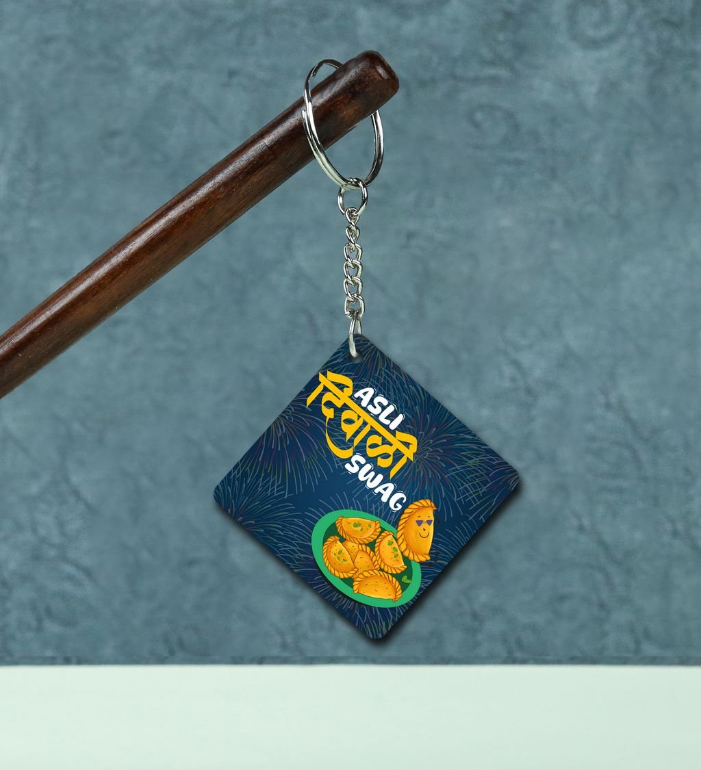 Celebrate this festive season with stylish Diwali Slogan Printed Square Keychains. Designed with vibrant prints and motivational festival slogans, these keychains are perfect for gifting or personal use. Lightweight, durable, and easy to carry, they add a festive charm to your everyday essentials. Whether it
