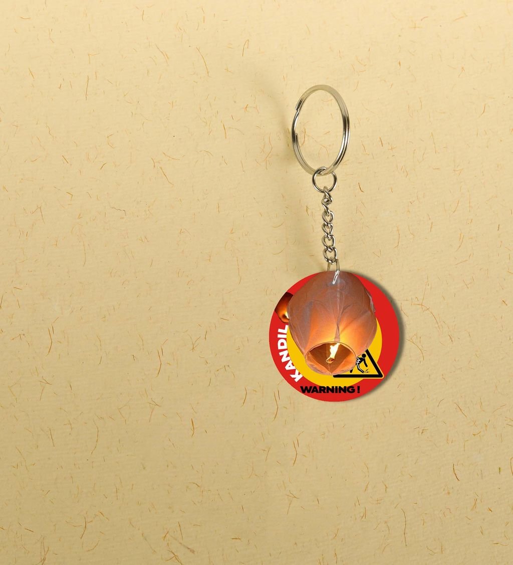 "Spread the Spirit of Diwali with a Fun Pataka Keychain Gift - Printed Round Keychain Pack of 2"